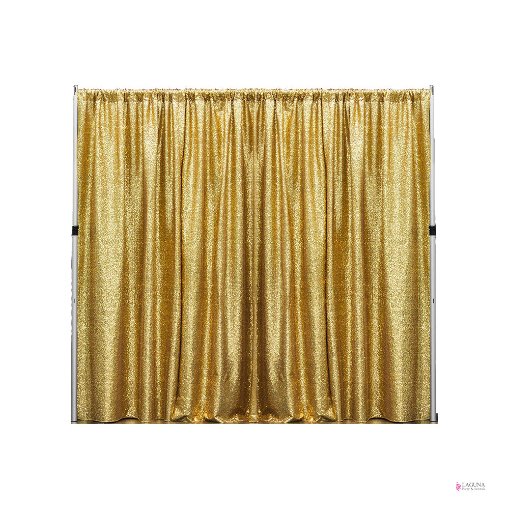Adjustable Width & Height: 8 Ft – 14 Ft (W) X 8 Ft – 12 Ft (H) • Includes Five (5) Sequin Drapes (choose from available colors)