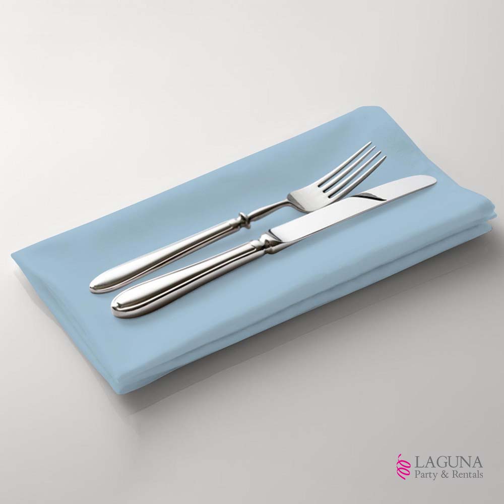 Baby Blue Color • 18″ (W) X 18″ (L) • Rented In Sets Of 10 • Event setup guide • Linen sizing guide