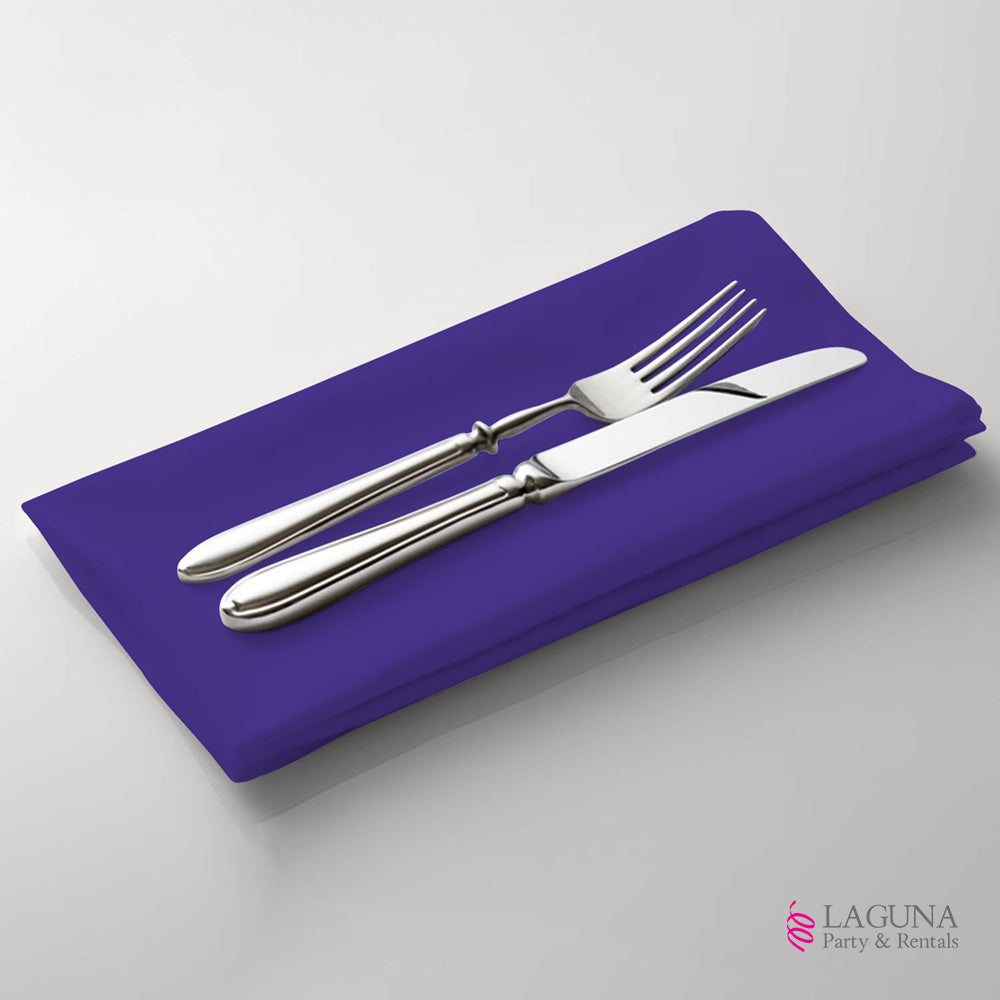 Purple Color • 18″ (W) X 18″ (L) • Rented In Sets Of 10 • Event setup guide • Linen sizing guide