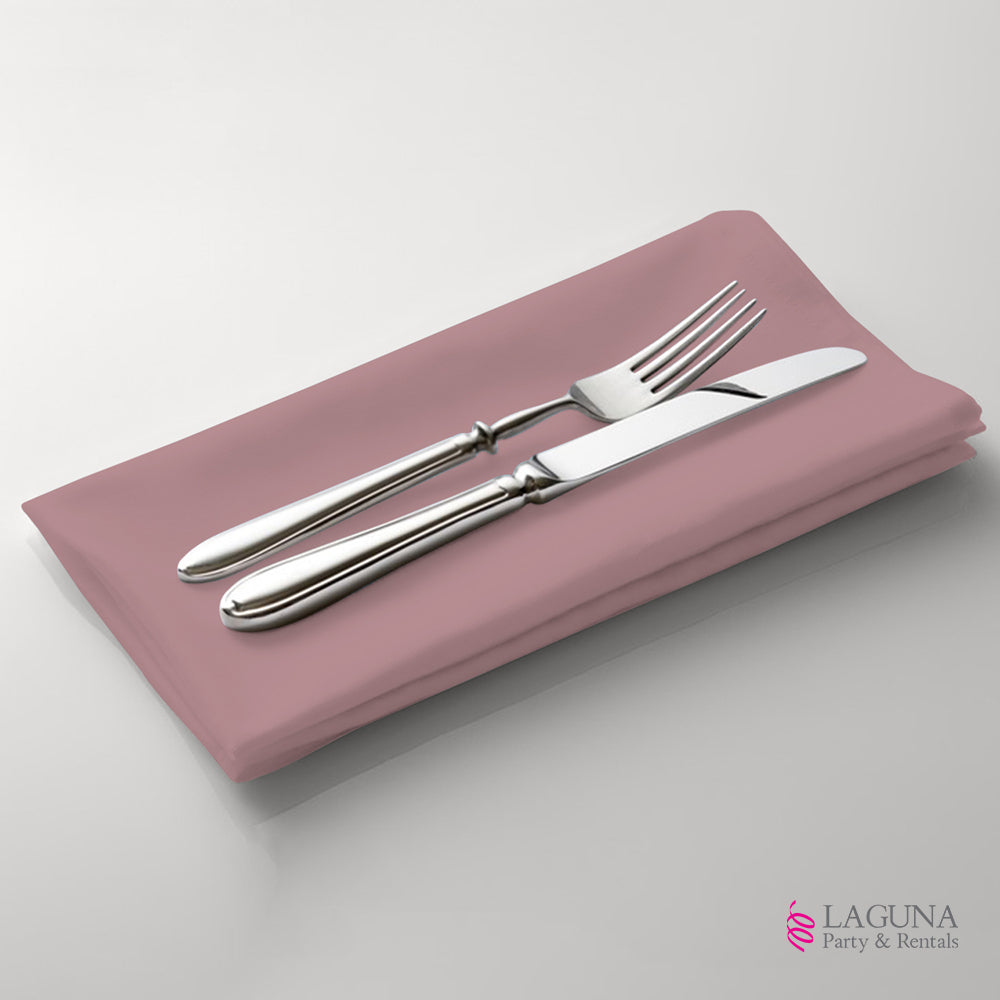 Rose Pink Color • 18″ (W) X 18″ (L) • Rented In Sets Of 10 • Event setup guide • Linen sizing guide