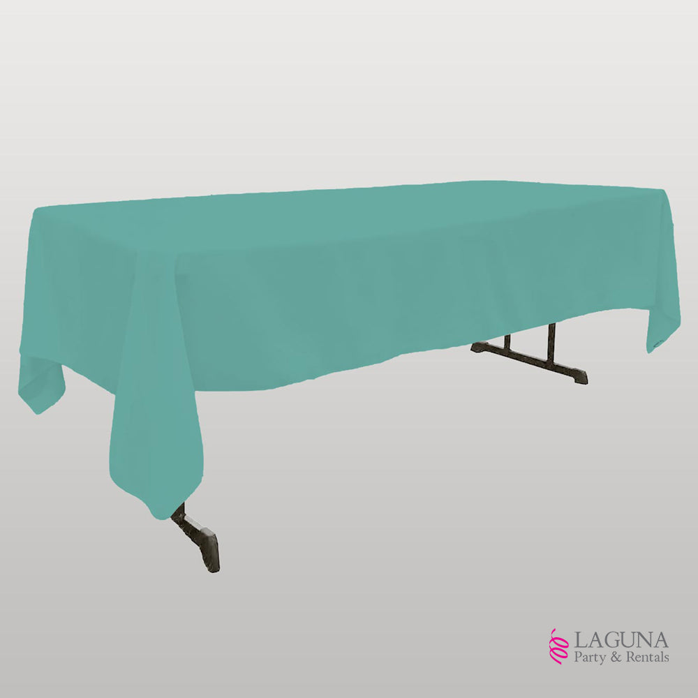 Tiffany Blue Color • 60″ (W) X 110″ (L) • Polyester • Event setup guide • Linen sizing guide