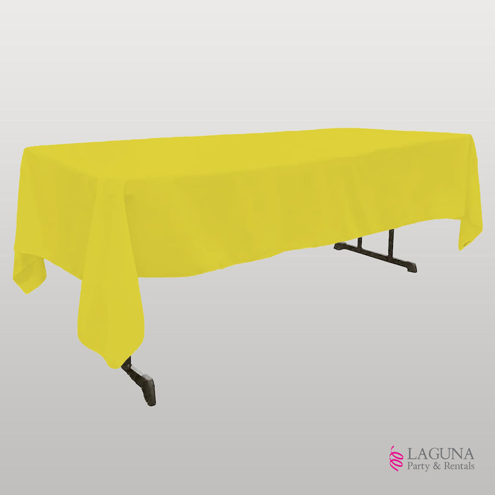 Yellow Color • 60″ (W) X 110″ (L) • Polyester • Event setup guide • Linen sizing guide