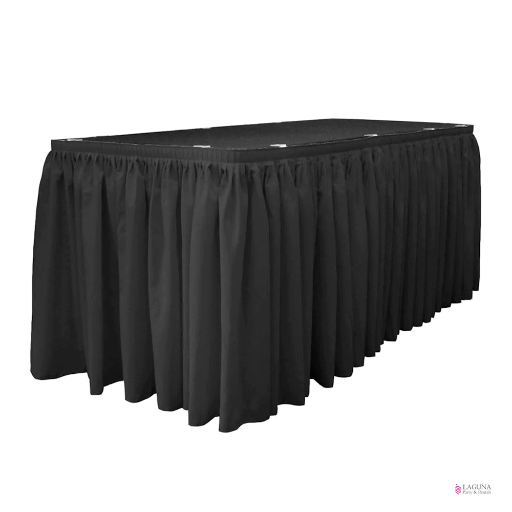 Black Color • 13 Ft (L) X 29″ (H) • Polyester • Calculate stage perimeter length and divide by skirt length to determine quantity required