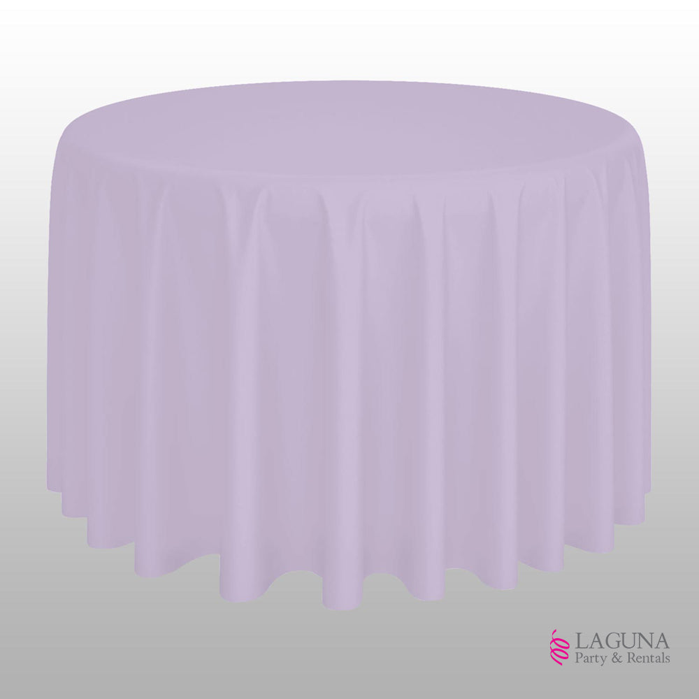 120″ Diameter • Lavender Color • Polyester • Event setup guide • Linen sizing guide